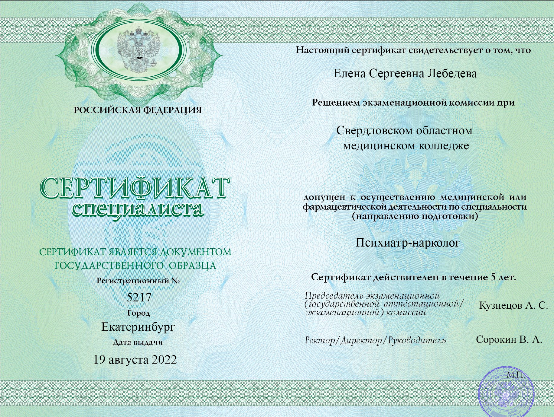Елена Сергеевна Лебедева врач нарколог клиники доктора Стукаловой в Хадыженске